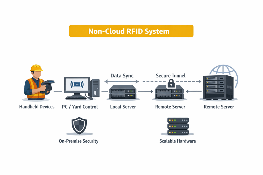 Non-cloud variations apply based on operational scale. Handheld-based systems support temporary or remote sites. PC-based deployments suit small yards. Local servers align with regional hubs. Remote servers support centralized IT control without public cloud reliance.